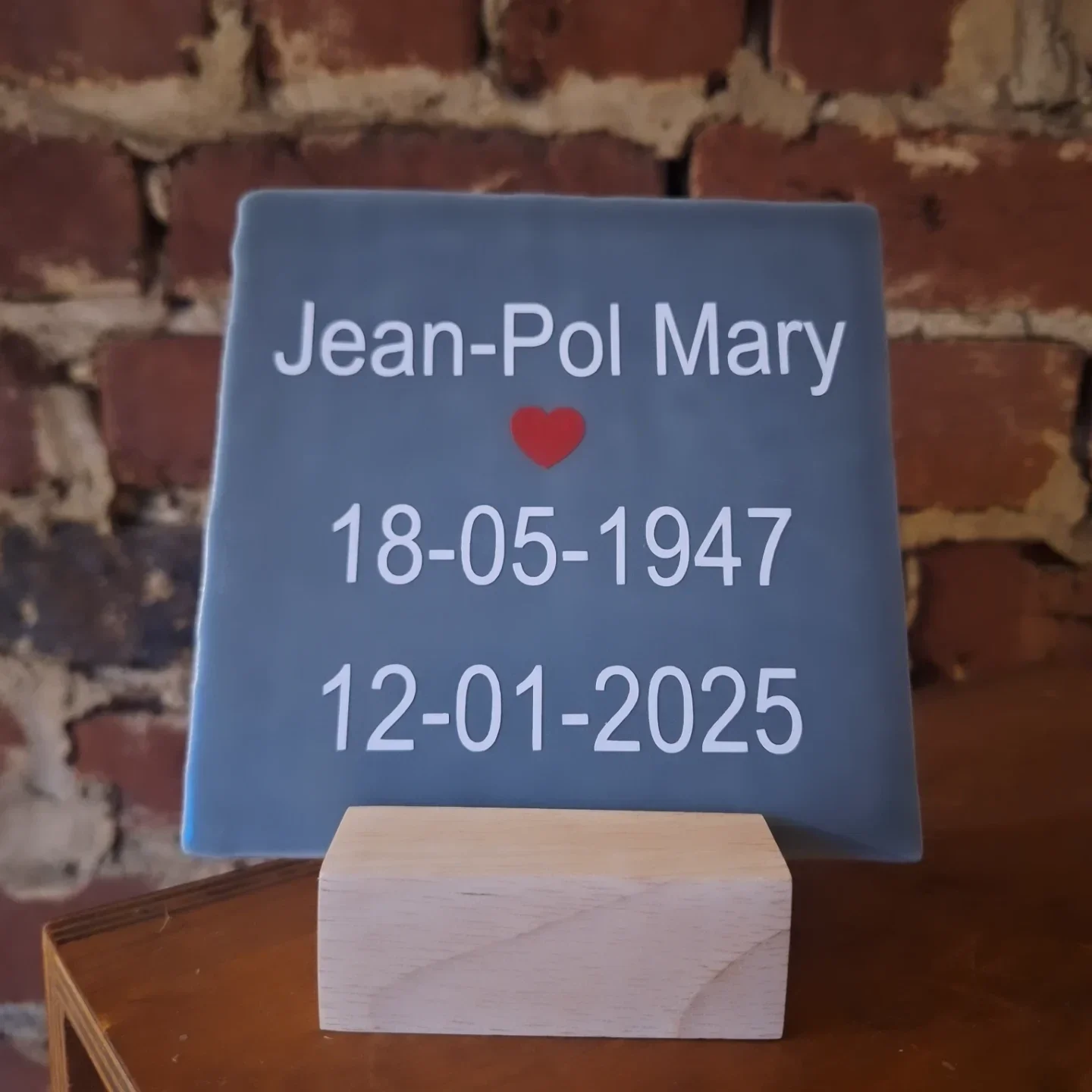 Gepersonaliseerde Tegel met Houten Staander – Voor Elke Gelegenheid