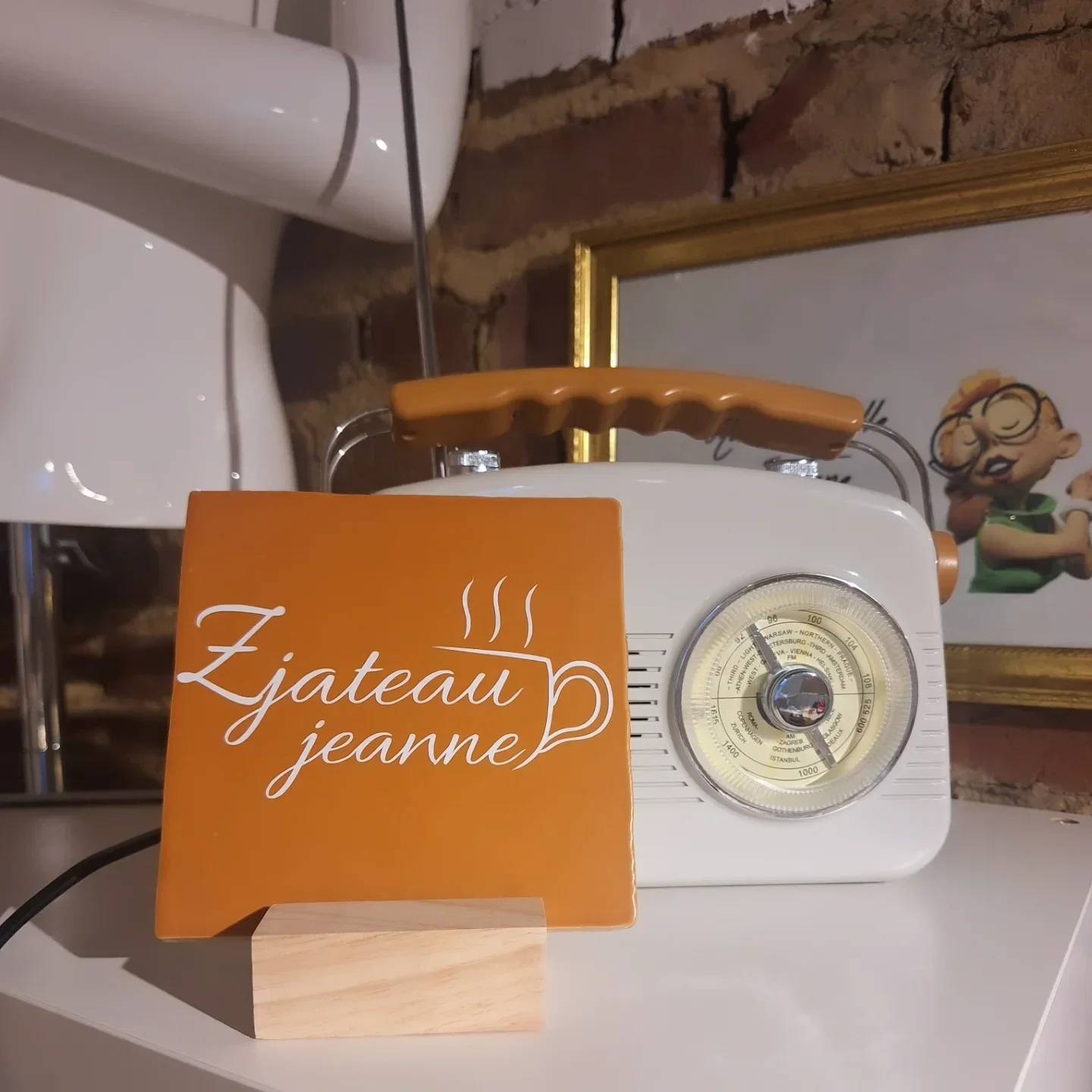 De tegel wordt voorzien van een duurzame, hoogwaardige vinylsticker met jouw ontwerp. Dankzij de houten houder staat hij stevig en stijlvol op elk oppervlak.